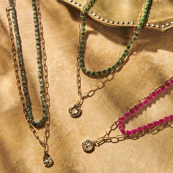 Mooie dubbele ketting van Biba gemaakt met kristal en natuursteen.
